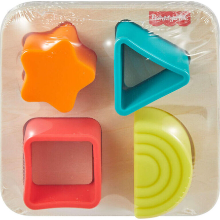 Introduce your baby to colors, shapes and sorting with this Wooden Silicone Puzzle from Fisher-Price. This developmental baby toy includes 4 colorful shapes made from soft silicone, plus a sturdy wooden base made with wood from Forest Stewardship Council-certified sources (FSC-N004566). This engaging shape-sorting toy helps foster sensory and fine motor skills, including dexterity and hand-eye coordination, while helping to develop early problem-solving. Decorated with non-toxic, water-based paints. Colors and decorations may vary.