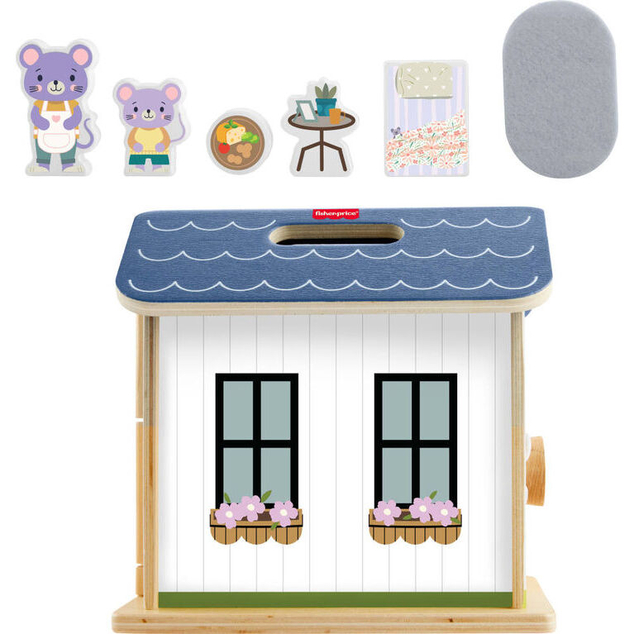 Kids can create fun stories, at home or on the go, with this Wooden On-the-Go Play House from Fisher-Price. This portable playset opens for 360 degrees of play and comes with 6 play pieces, including 2 cute mouse characters, 2 furniture pieces, 1 snack piece, and a soft fabric rug. Made with wood from Forest Stewardship Council-certified sources (FSC-N004566) and decorated inside and out, this travel-friendly dollhouse is sized just right for preschoolers. Pieces store conveniently inside. Colors and decorations may vary.
