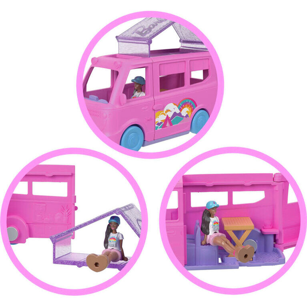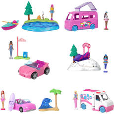 Enter the world of Barbie doll with Mini Barbie Land -- a place to imagine big and Dream in Mini! Stylish rides made with surprise, these mini vehicle sets are ready for play or display. The small-scale recreations of iconic Barbie transportation, like the DreamCamper, Snowmobile, and Kayak, have fun features unique to the vehicle! Each set comes with an adorably styled 1.5-inch Barbie doll that bends at the waist so she can sit and drive toward big adventures in Mini Barbie Land. Fans ages 4 years and older will want to collect all these cute wheels to build their own mini world! Each sold separately, subject to availability. Colors and decorations may vary.