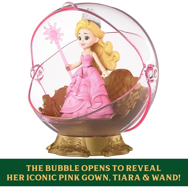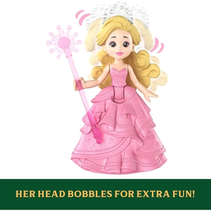 The toy features a 2.75-inch Glinda doll wearing her signature gown, wand and tiara from the film, with a bobbling head for extra fun!