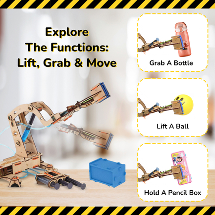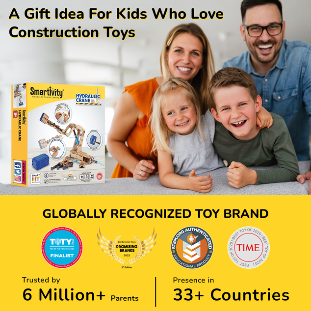 Smartivity Pump It Move It Hydraulic Crane allows kids to build their own fully functional crane. Once built, the kids can manoeuvre the crane's movement around 2 axes,
