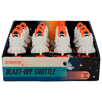 Countdown to surprise with the Astroverse Blast-Off Shuttle! This spring-powered pop toy sticks to smooth surfaces —press it down, wait, and watch as it suddenly blasts into the air. Simple to use and full of suspense, it delivers classic cause-and-effect fun with a space-inspired twist. Small toy, big lift-off moments.