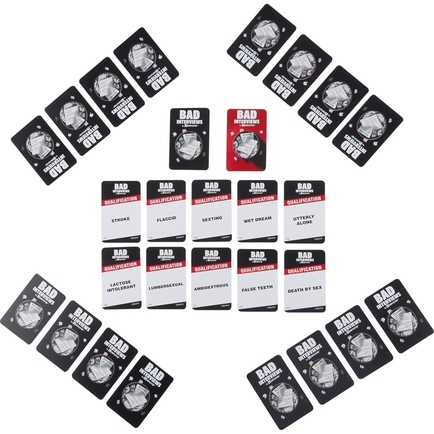 Players will fake it 'til they make it with the Bad Interviews by Funemployed adult party game. Each round, the Manager presents the job to earn. The rest of the players are Applicants that build a resume using Qualification Cards. They take turns making their pitch, hilariously explaining each ridiculous card. Then, the Manager hits them with a trick question. The Manager's favorite gets the job. Earn the most jobs and win the game!