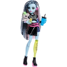 What's the stitch-uation? It's Frankie Stein doll, stunning as can be in a high-voltage outfit! With their pet dog Watzie and 7 accessories, they're all set for a frightfully fun day at Monster High.