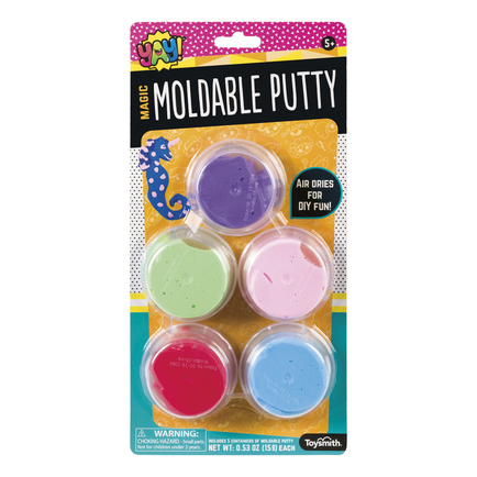Fits 6 per peg. Shape the magical, moldable putty into your own unique creation and then let it air dry hard into a sculpture. Includes five moldable putty colours and sculpting ideas. 15g. each. 5yr plus