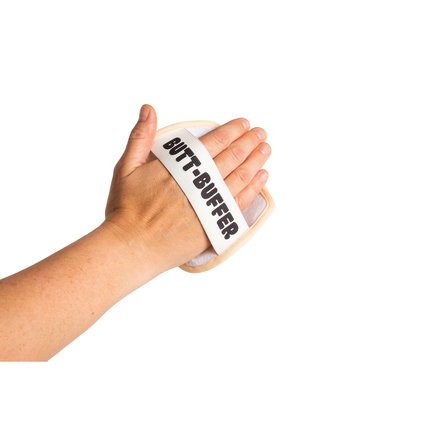 Similar to a loofah, the 'butt buffer' has an easy to use handle that fits snuggly into the palm of your hand for easy buffing!