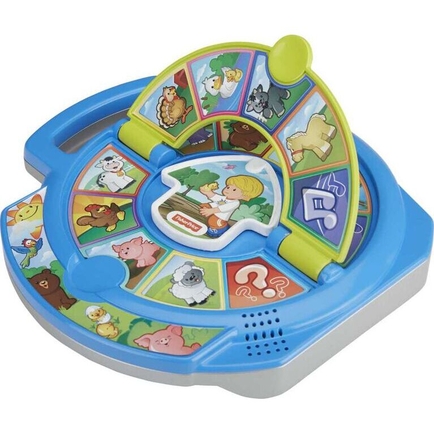From the farm and into the wild, the Little People World of Animals See 'n Say is opening up the world of the animal kingdom to introduce kids to the names and sounds of a wide variety of creatures. With two exciting pages - one dedicated to farm animal friends and one for exotic wild beasts - this spin on the classic See 'n Say will ignite their curiosity while boosting those all-important fine motor skills. To start the learning fun, select a page, then point Eddie to an animal and pull the lever to discover its name and hear what it says! Little learners can even put their knowledge to the test with a stimulating quiz mode! Simply point Eddie to the question mark, pull the lever, and the See 'n Say will ask your toddler to find a chosen animal. Kids then spin the arrow to point to their answer and pull the lever to find out if they're right! For musical fun, point Eddie to the music note, where your toddler will delight in silly songs about the animals on both pages. Where development comes into playFine motor and sensory: Toddlers boost dexterity as they move the arrow and pull the lever to hear different sounds. Cognitive: Build their sense of wonder as they discover new animals and learn the animals' names and sounds! Social/emotional: Kids can gain confidence as they test their knowledge about their new animal friends in quiz mode.