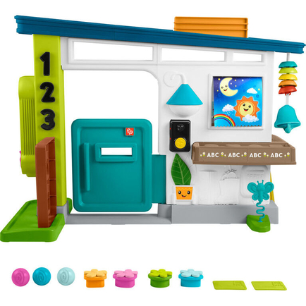 The Laugh & Learn Ultimate Playhouse playset from Fisher-Price is packed with engaging activities, lights, songs and sounds for baby and toddler homeowners to discover. The house exterior features a doorbell, porchlight, shape-sorter window box, drop-through rain spout and more. The crawl-through door leads to baby’s living area with desk, light-up fishbowl, flower spinner, thermostat dial, and a pretend radio with 4 buttons that activate fun music and sounds. And with Smart Stages technology, the learning grows along with your baby with 200+ fresh songs, sounds and phrases! Use the globe button to select a language: English, Spanish, French, or Brazilian Portuguese. (Colors and decorations may vary.)