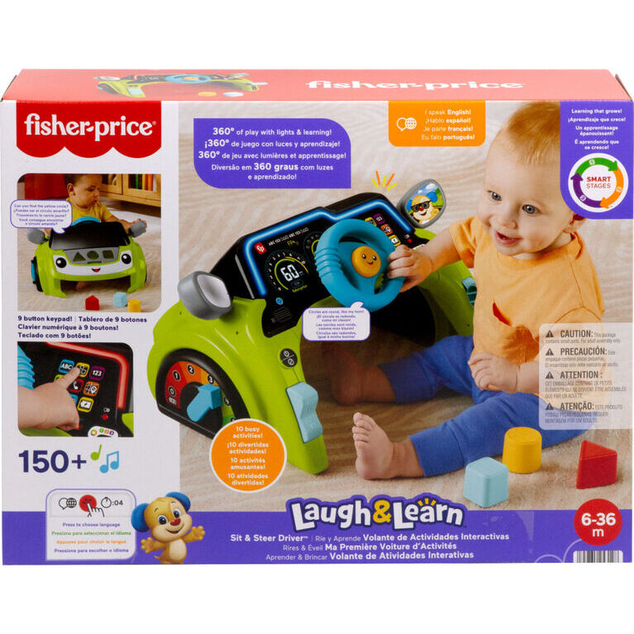 Baby can shift learning fun into high gear behind the wheel of the Laugh & Learn Sit & Steer Driver activity center from Fisher-Price. This electric car-themed play center is packed with activities all around, plus exciting lights, music and sounds, to encourage babies to crawl and explore. The realistic design includes a light-up dashboard, 9-button keypad and moveable “steering” wheel with horn that encourages toddler pretend play and activates 150+ songs, sounds and phrases. And with 3 Smart Stages levels, the learning fun grows along with your baby! Use the globe button to select a language: English, Spanish, French, or Brazilian Portuguese.
