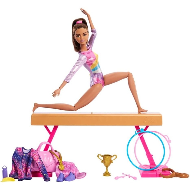 Kids will flip out imagining a career in gymnastics with Barbie doll and her balance beam -- the playset includes 10+ themed pieces to inspire winning stories!