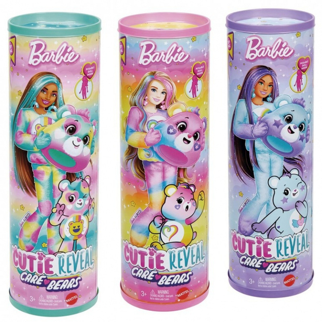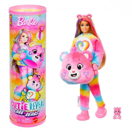 With 10 surprises to discover, Barbie Cutie Reveal Care Bears dolls deliver an exciting experience for kids, packed with plush friends, sweet fashions and transforming fun!