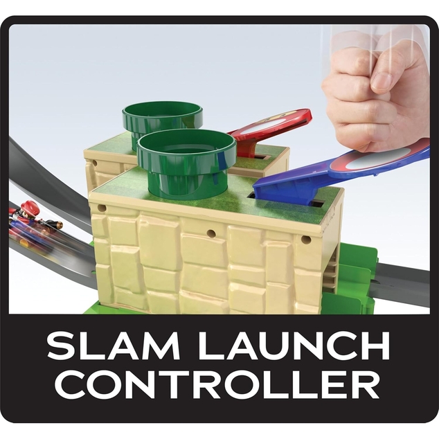 Hot Wheels brings the fast-paced action of the Mario Kart world to life with a Circuit Track inspired by iconic courses from the popular video game. Race favorite Mario Kart Mario as a die-cast kart vehicle and overcome obstacles and challengesjust like in the game, but this time on Hot Wheels track! Load the kart into the launcher and take off around the track! Pump up challenges by reconfiguring the track and connecting to the Piranha Plant, Thwomp sets and the full Mario Kart Circuit track set (sold separately). Great stunting and racing thrills for younger kids who love Mario Kart! Each sold separately for ages 3 and older.