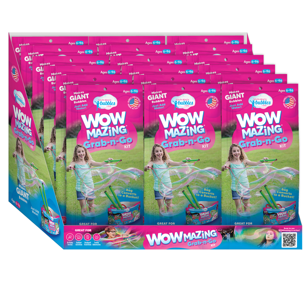 Out at park or camping without a bucket? No problem. Use the bag as your bucket! Simply follow the instructions on the package and you will be making bubbles in no time!