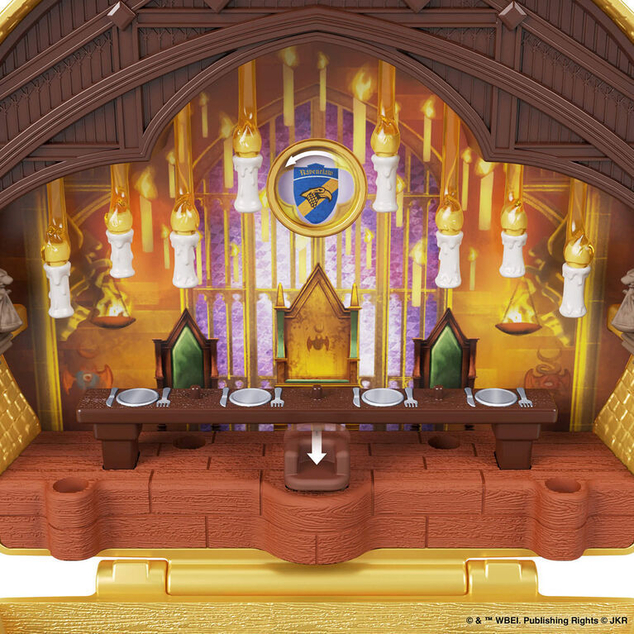 Polly Pocket brings the beloved story of Harry Potter to life in micro form! The 3-D Hogwarts exterior opens to reveal four iconic scenes from the first movie, the Sorcerer's Stone. Fans can recreate the journey to Hogwarts with Harry Potter, Ron, and Hermione at King's Cross station. The eleven accessories and fun features offer Easter egg details and play and display moments that capture popular scenes: use the sorting hat in the great hall or have a feast with Professor Dumbledore and Professor McGonagall. Don't forget Hedwig! This collectible compact is ideal for Harry Potter and Polly Pocket fans alike. Colors and decorations may vary.