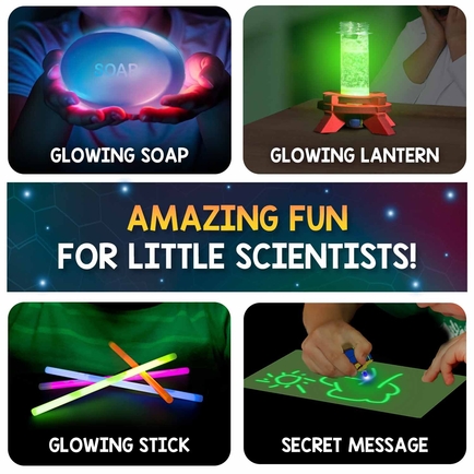 From Glow in the dark lava lamps to writing secret messages, from making your Glow Soap to making your Glow Spinner, this kit will provide your child with endless hours of fun and learning.
