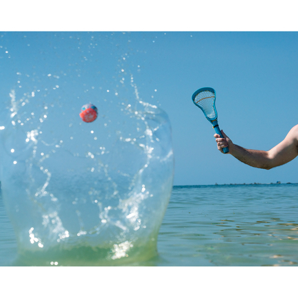 Game changer! Play lacrosse more freely in the water with short sticks and a water bouncing Waboba ball instead of a regular ball.